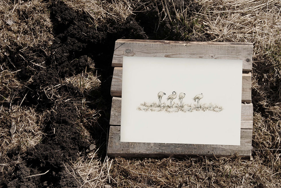 on bamboo paper (265gsm), giving the cranes a true, natural body.