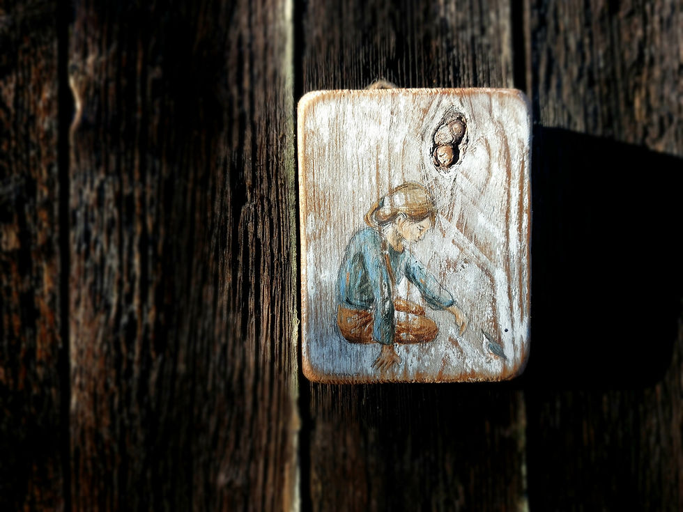 Handmade paintings with natural paint on wood. It is a product of nature and it can find its way back to nature after a very long life.